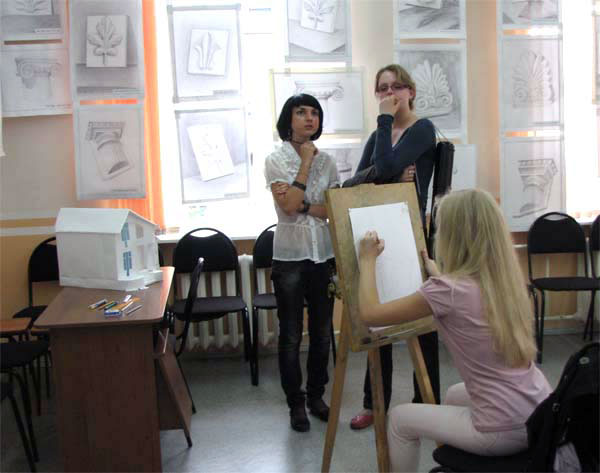 На курсах рассматривается построение геометрических фигур (цилиндр, куб, шар, многогранник), перспективный рисунок куба и цилиндра. Изучается рисунок капители (дорического ордера), объемно-пространственная композиция из геометрических тел.